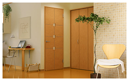 内装建具は主にパナソニックを採用しており、デザインも豊富で建具本体は汚れがつきにくい特殊加工シートが施され、美しく長くお使い頂けます。その他ウッドワンやアイカなども対応可能です。